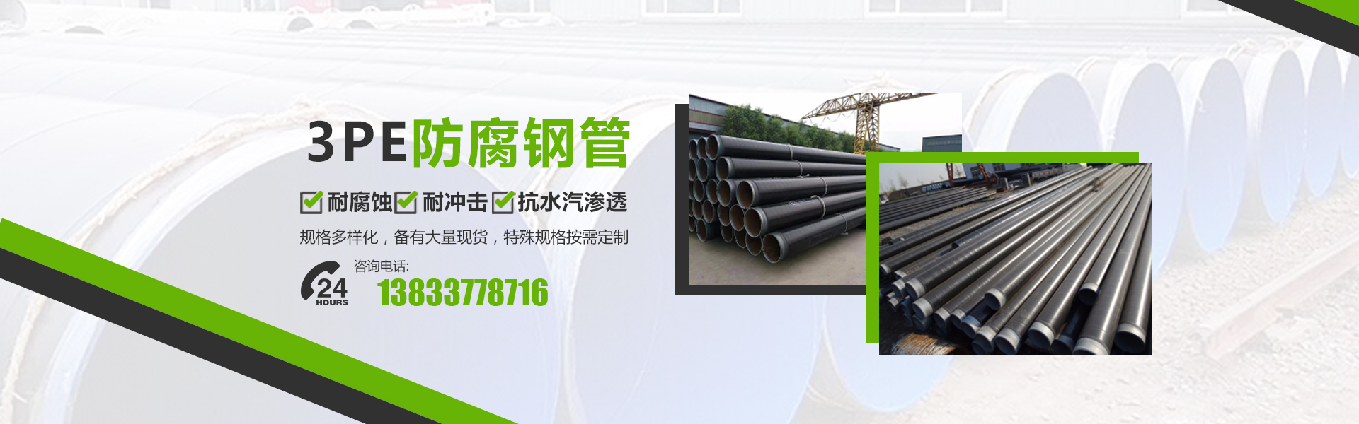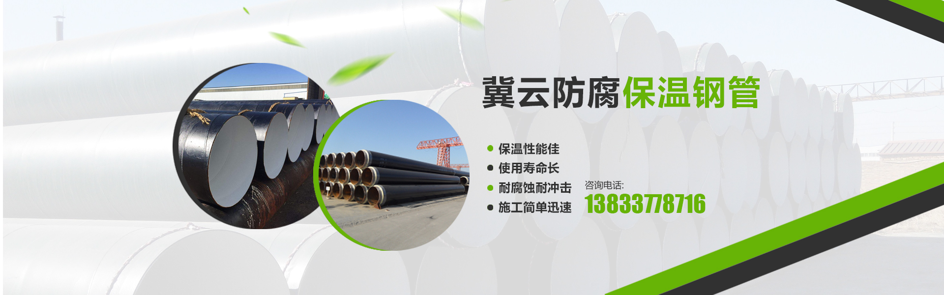 沧州冀云管道装备有限公司是一家专业销售双面埋弧螺旋焊钢管、无缝钢管、直缝焊管、防腐保温钢管及石油套管、法兰、弯头管件于一体的大型钢管企业。公司座落于中国管道装备制造基地河北省沧州市盐山城南工业开发区。京沪铁路、京沪高速、石黄高速、津汕高速、104、307、205国道分布于周边或穿与境内,地理位置得天独厚,交通运输极为方便。专业销售3pe/2pe防腐钢管、聚氨酯保温钢管,规格219mm-1620mm,用于输油管道、天然气管道、供热管道、供水管道。可承接钢管内壁、外壁环氧煤沥青一布三油或(二布四油)钢管防腐,钢管内壁水泥砂浆衬里防腐、ipn8710饮用水管道防腐。 公司钢管母材主营产品为无缝管、石油套管、大口径埋弧焊直缝焊管、16mn钢板卷管、螺旋焊管、热镀锌管及管道内外壁防腐施工。产品用于石油、天然气、煤气、水、蒸汽等流体长途输送管线及供热、化工、制冷、井壁套管、打桩等工程配套。